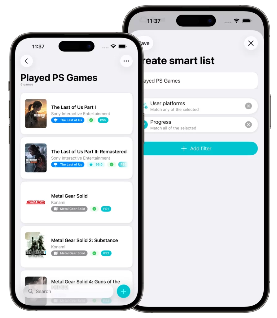Forget manual sorting! Smart Lists automatically generate custom collections based on your criteria—by console, completion status, genre, or even developer. Stay organized, your way.