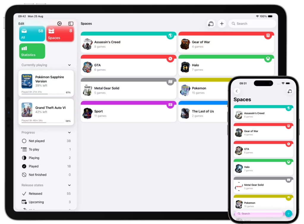 Name, color, icon—make each Space truly yours. Whether you want to keep track of what you’re currently playing or what’s next on your list, Spaces help you stay on top of your backlog.