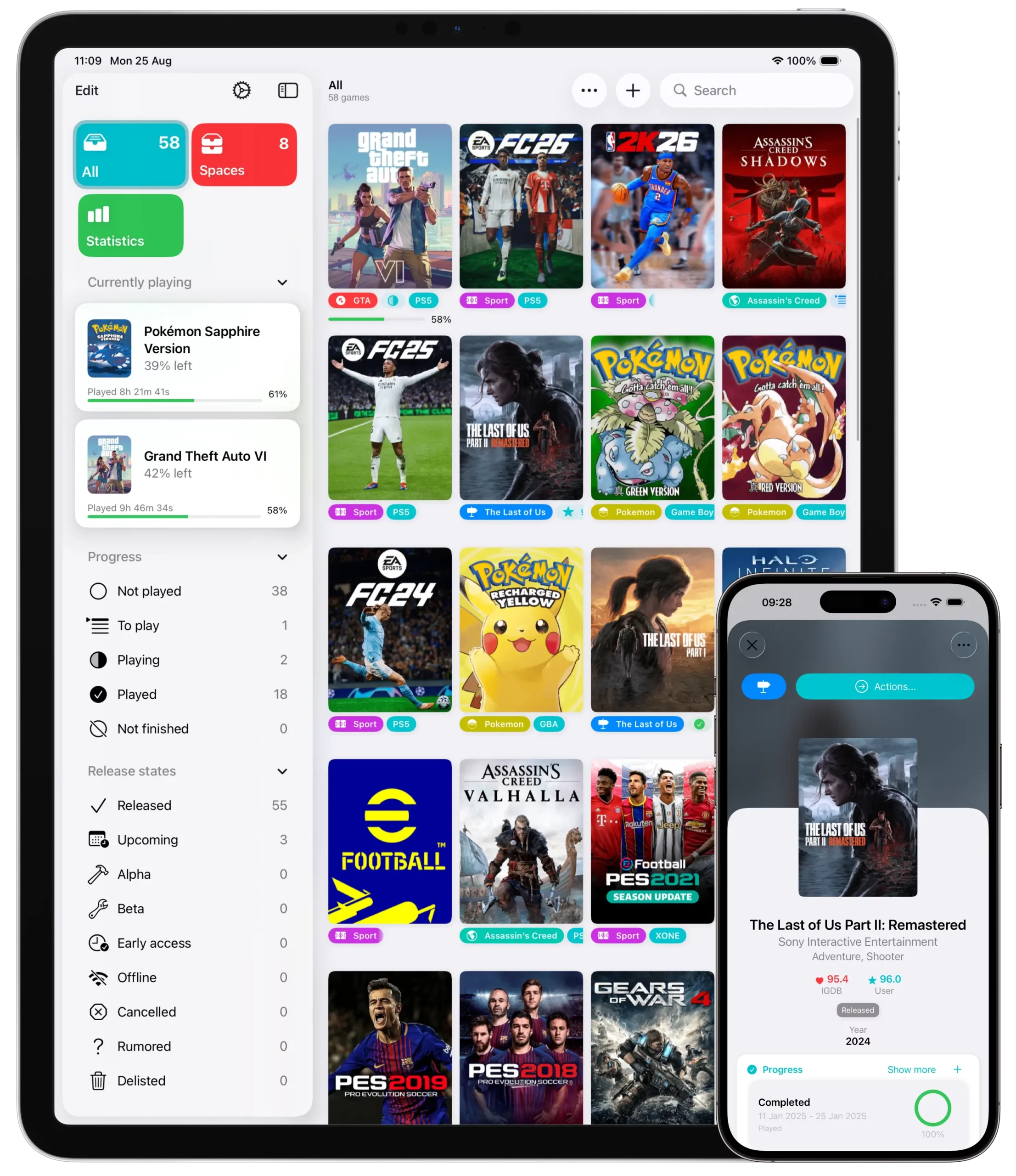 Seamlessly sync your game library across your iPhone, iPad, and Mac using iCloud. Start tracking on one device, pick up where you left off on another.